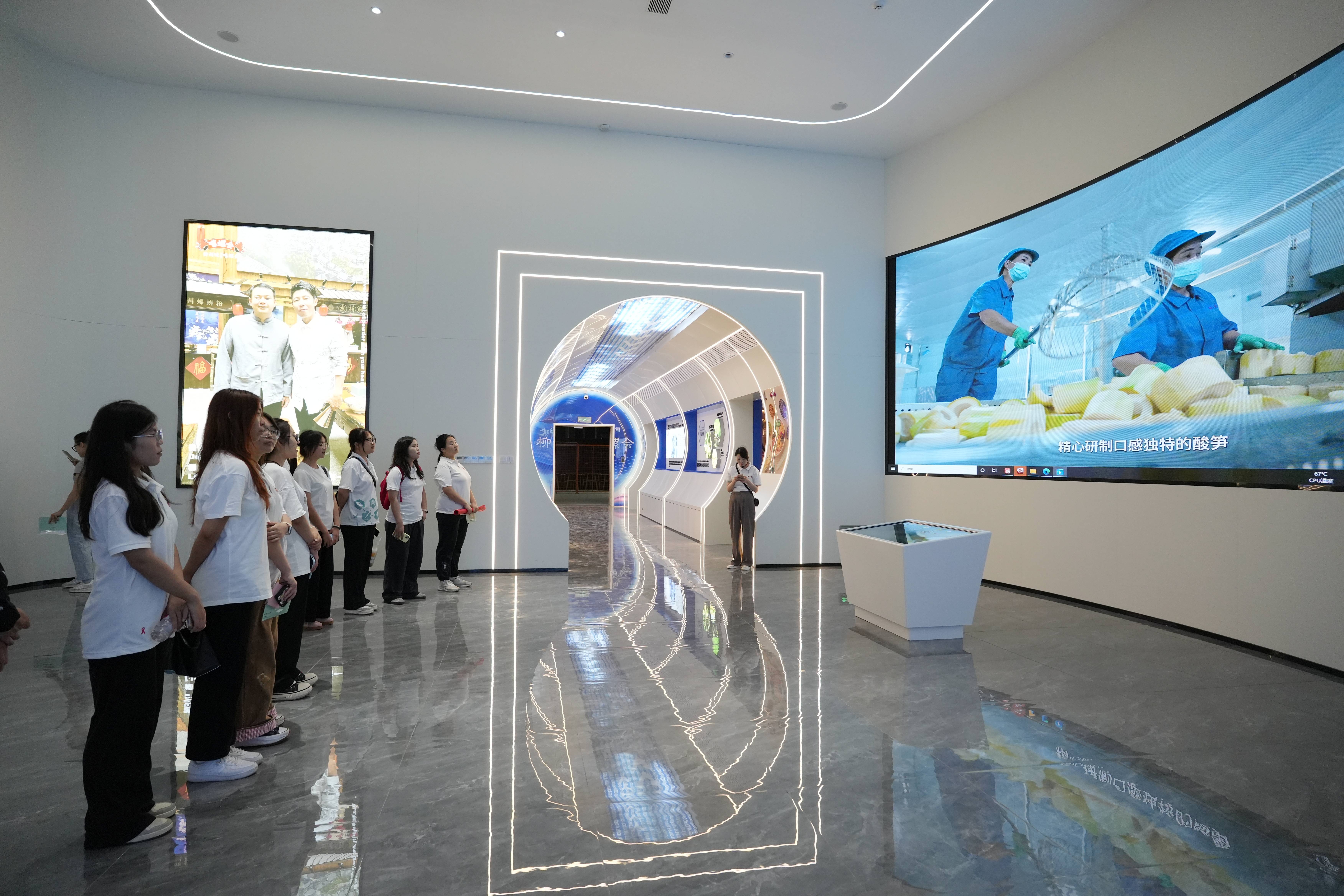 走进嘻螺会螺蛳粉智能化生产车间,师生近距离感受非遗技艺与现代食品工程的完美结合。在文化展厅,他们深入了解螺蛳粉的历史渊源和发展历程,见证了“小米粉”变身“大产业”的奇妙旅程。