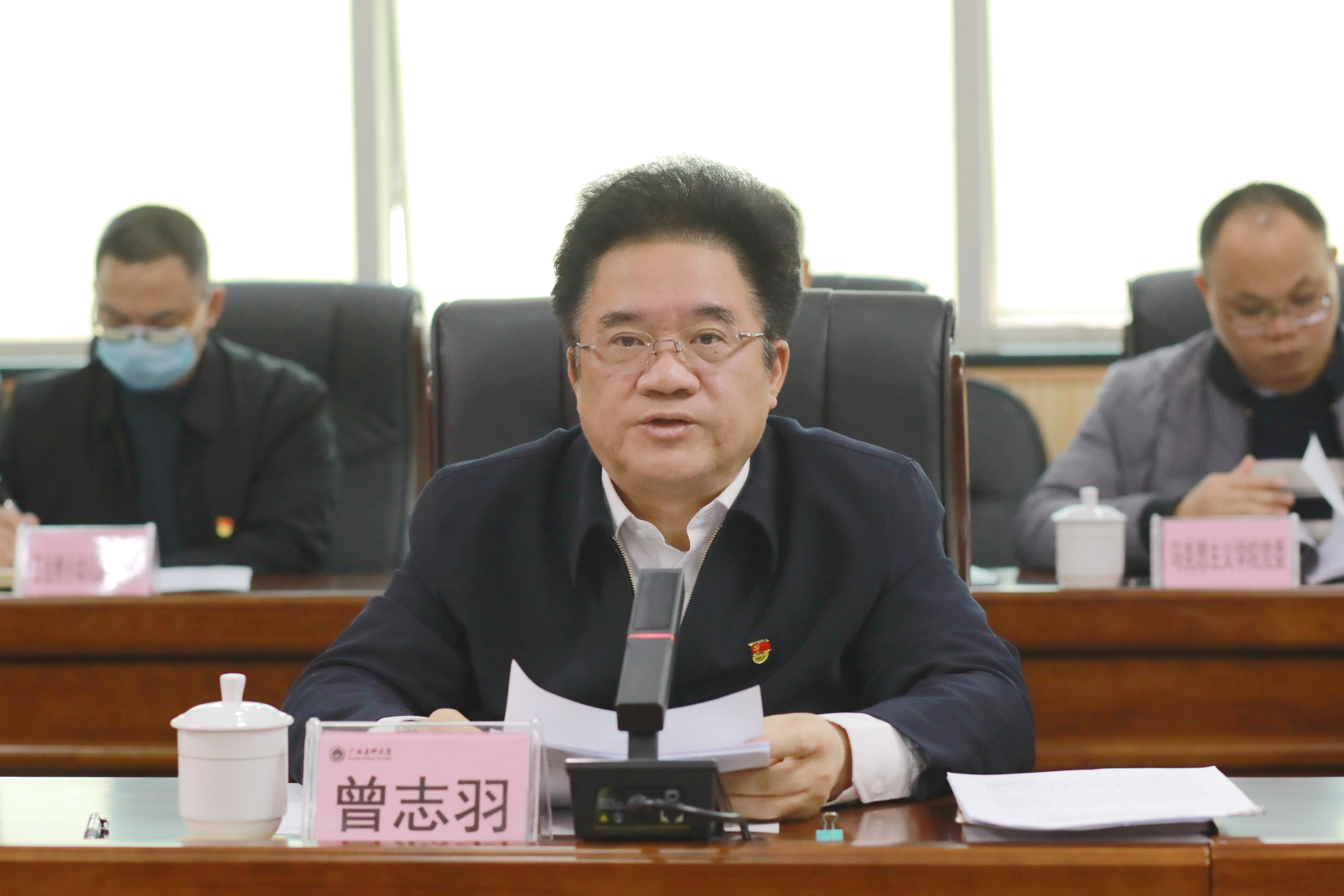 曾志羽校长指出,做好新时代新征程上的宣传思想文化工作责任重大、使命光荣。各二级党组织各单位要按照自治区党委部署要求,精心组织抓好传达学习、宣传宣讲、教育培训,迅速掀起热潮。他就如何推动习近平总书记重要讲话精神在医大落地生根、开花结果,提出三点要求:一是提高站位、系统掌握,深入贯彻落实习近平总书记对广西重大方略要求;二是守正创新、真抓实干,以习近平文化思想指引学校宣传思想文化工作再上新台阶;三是牢记嘱托、勇担使命,切实把习近平总书记重要讲话精神转化为推动学校高质量发展的强大动力。