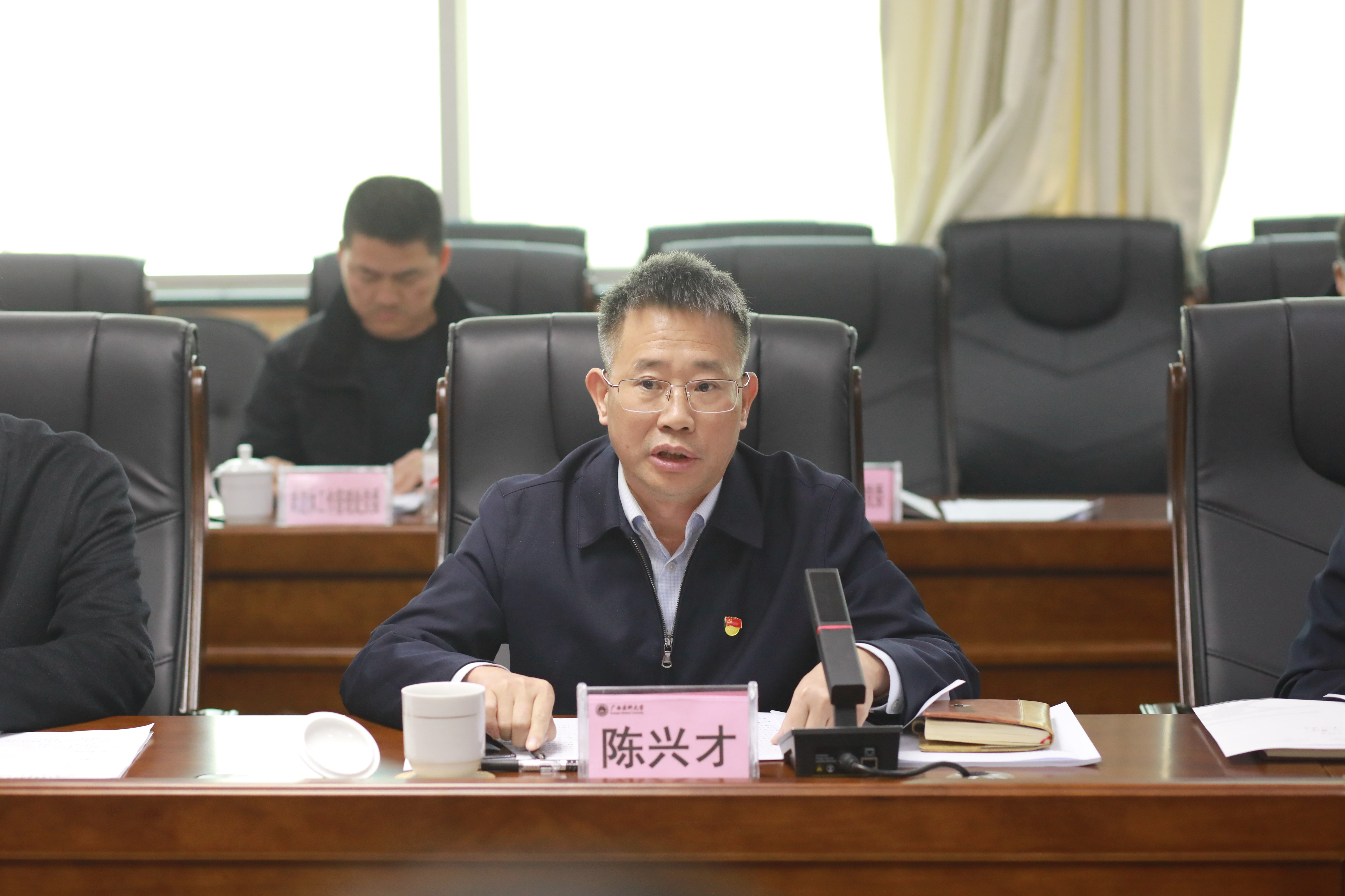在学习研讨环节,曾志羽校长结合学习内容和工作实际作中心发言,从找准立德树人“主心骨”、坚定文化建设“主基调”、担当健康文化事业“主力军”三个方面谈如何深入学习贯彻习近平文化思想,勇担高校立德树人崇高使命。副校长陈兴才围绕以习近平文化思想为指引,深入贯彻落实习近平总书记对广西重大方略要求,持续铸牢医学院校师生中华民族共同体意识,推动学校深化高质量发展作中心发言。党委宣传部、教师工作部部长王宇清从认真贯彻落实“七个着力”重大要求,着力建设具有强大凝聚力和引领力的高校意识形态工作,提升新闻舆论“四力”等方面交流心得体会。学工部(处)部(处)长闵晓阳结合学习内容和学生工作,从强化思想引领、深化队伍建设、用好信息技术建设智慧学工等方面分享提升学生工作、提高育人质量的心得体会。