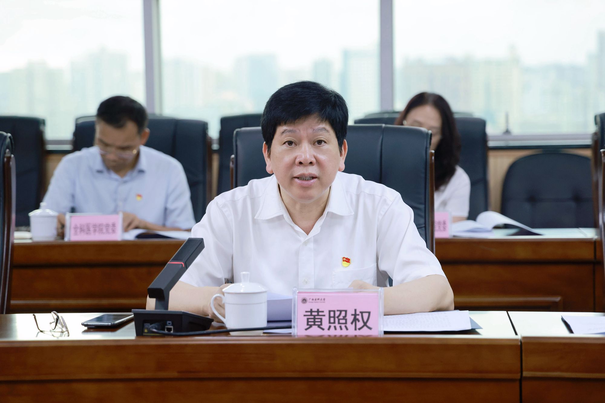黄照权要求,要切实把习近平总书记关于全面加强党的纪律建设的重要论述各方面要求贯彻到党纪学习教育中去,把开展党纪学习教育与学习贯彻习近平总书记关于广西工作论述的重要要求结合起来,与落实党中央及自治区党委决策部署结合起来,与学校中心工作和重点任务结合起来,锐意进取、积极作为,抓好服务区域重大战略需求,聚焦省部共建、“双一流”建设和“多校区多院区”办学办医新格局,将党纪学习教育成效转化为推动学校高质量发展的实际成效,以严明纪律凝聚推动学校事业发展的强大合力,以优异成绩迎接新中国成立75周年和学校建校90周年。